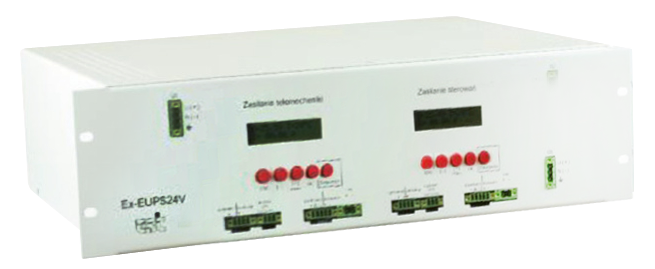 Zasilacze EUPS 24V przeznaczone są do zasilania sterowników telemechaniki. Dzięki wbudowanym akumulatorom, zapewniona jest nieprzerwana praca zasilanych urządzeń, w przypadku zaniku napięcia wejściowego. Zasilacze umożliwiają przetwarzanie napięcia przemiennego 230 V AC lub napięcia stałego 220 V DC na napięcie stałe 24. Napięcie wyjściowe zasilaczy jest ściśle kontrolowane dla potrzeb prawidłowej pracy akumulatorów i uzależnione jest od typu akumulatorów, temperatury otoczenia i stopnia naładowania. Zasilacz z akumulatorami o pojemności 5 Ah, przeznaczony jest do zasilania obwodów sterowniczych o napięciu 24 V i maksymalnym prądzie 5 A. Każdy z zasilaczy EUPS 24V może sterować zewnętrznymi układami ogrzewania i wentylacji. Wyjścia sterujące przystosowane są do zasilania przekaźników pośredniczących.