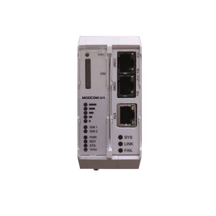 Modem telemetryczny MODCOM W4 to przemysłowe urządzenie komunikacyjne zaprojektowane do transmisji danych pomiędzy rozproszonymi urządzeniami terenowymi a systemami nadrzędnymi w sieciach automatyki. Dzięki wbudowanemu modemowi GSM (4G/LTE) oraz technologii DualSIM, urządzenie gwarantuje stabilną łączność i redundancję komunikacji. Korzystając z MODCOM W4, zyskujesz również: