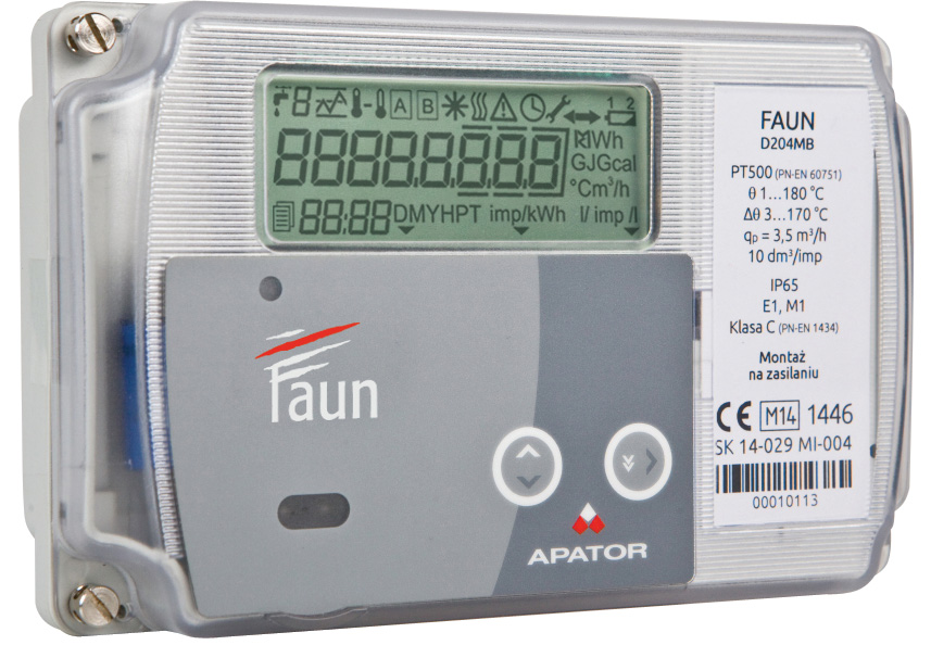 FAUN to najwyższej klasy przelicznik ciepłomierza przeznaczony do profesjonalnych zastosowań w instalacjach ogrzewania, chłodzenia oraz ogrzewania i chłodzenia w tym samym obiegu. Urządzenie współpracuje zarówno z ultradźwiękowymi, jak i mechanicznymi przetwornikami przepływu oraz z parowanymi czujnikami temperatury, stanowiącymi oddzielne elementy ciepłomierzy rozłącznych – również innych producentów.