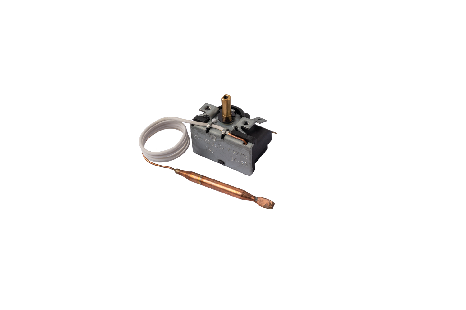 Termostat kapilarny KR XX.NN to jednobiegunowy regulator temperatury działający na zasadzie dylatacji cieczy, przeznaczony do regulacji temperatury w jednofazowych urządzeniach domowych i podobnych. Konstrukcja urządzenia opiera się na zespole przełączającym oraz kapilarnym czujniku temperatury, co zapewnia stabilną i niezawodną pracę w codziennych zastosowaniach. Jednostka przełączająca realizuje mikro-odłączenie przewodu fazowego, a urządzenie dostępne jest w wersjach z lub bez zacisku sygnalizacyjnego, umożliwiającego sygnalizację stanu mikro-odłączenia obciążenia elektrycznego. Termostat nie jest przeznaczony do odłączania urządzeń elektrycznych od sieci i powinien być stosowany zgodnie z normą ČSN EN 60335-1. Korzystając z termostatu kapilarnego KR XX.NN, zyskujesz: